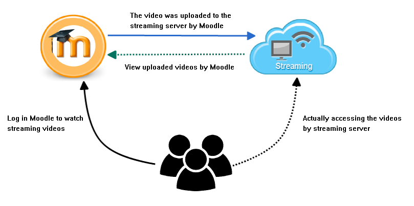 The streaming server can be used with the Moodle activity plug-in – Videos